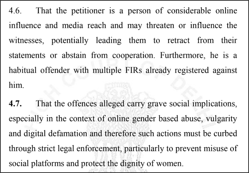 The petitioner, Ajaz Khan, argued that his video was in retaliation for a “derogatory” video made by the complainant’s son. He claimed he was unable to join the Delhi investigation due to his father’s medical emergency and a conflicting investigation in Mumbai. He also stated that his electronic devices had already been surrendered to the Mumbai police, making custodial interrogation unnecessary. The State opposed the bail, citing the petitioner’s deliberate evasion and non-cooperation with the investigation. The court observed that since the petitioner’s devices were already with the Mumbai police, the need for custodial interrogation was not necessary. The court concluded that the petitioner’s willingness to cooperate and the fact that his devices were already seized by police tilted the balance in his favour.