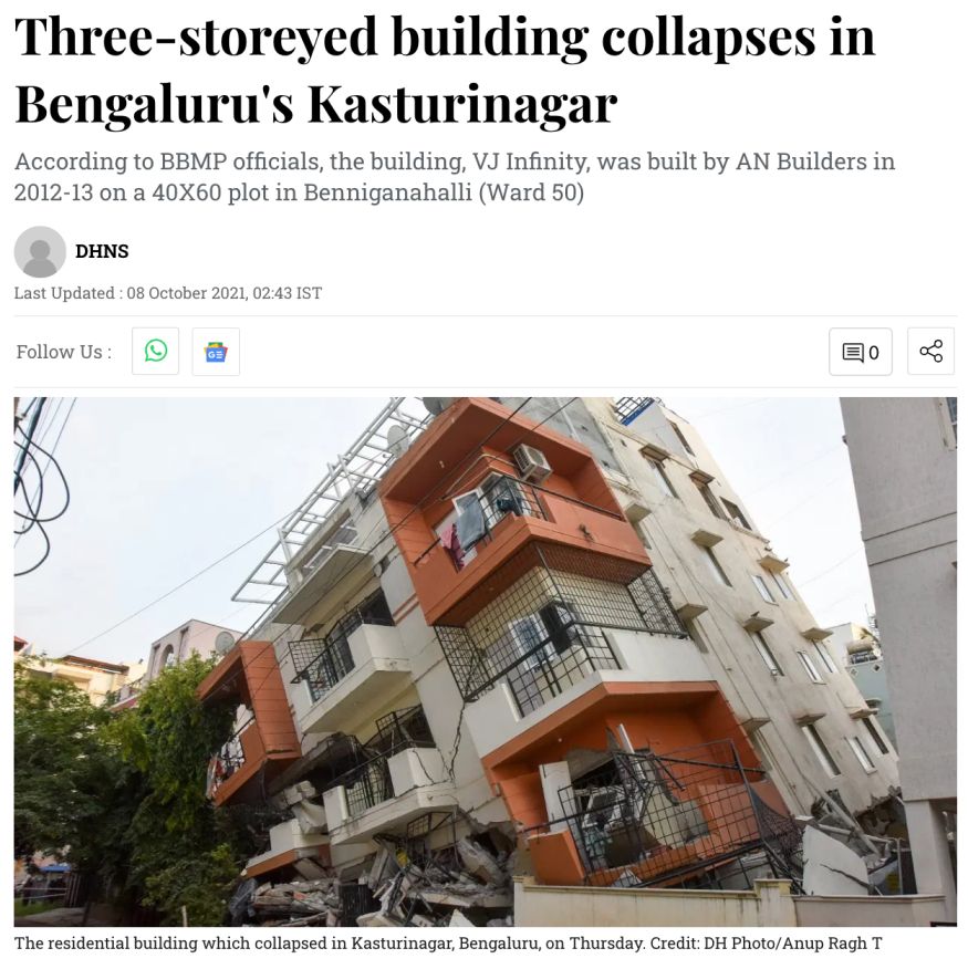 చివరిగా, 2021లో బెంగళూరులో ఓ బిల్డింగ్ కూలిన వీడియోను షేర్ చేస్తూ వాస్తు నిపుణుడి మాటలు విని పిల్లర్ తొలగించడంతో కూలిపోయిందని తప్పుగా క్లెయిమ్ చేస్తున్నారు.