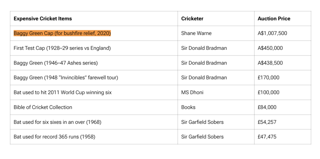 ఈ క్లెయిమ్ వెనుక ఉన్న నిజానిజాలు తెలుసుకోవడానికి, తగిన కీవర్డ్స్ ఉపయోగించి ఇంటర్నెట్లో వెతకగా, యువరాజ్ సింగ్ 2007 టీ-20 ప్రపంచ కప్లో ఒకే ఓవర్లో ఆరు సిక్సులు కొట్టిన బ్యాట్ను లలిత్ మోదీ 7 కోట్ల రూపాయాలకు వేలం పాటలో అమ్మేసాడని చెప్తున్న ఎటువంటి వార్తా కథనాలు మాకు లభించలేదు. అలాగే, ఇప్పటి వరకు వేలంలో అమ్ముడు పోయిన (ఇక్కడ, ఇక్కడ) క్రికెట్ ఆటగాళ్ల బ్యాట్ కానీ, వేరే ఏ వస్తువు కానీ 7 కోట్లకు అమ్ముడు పోయినట్లు మాకు ఎటువంటి వార్తా కథనాలు లభించలేదు. జాగరాన్ జోష్ వారి ఒక ఆగస్టు 2025 కథనం ప్రకారం ఆస్ట్రేలియా క్రికెటర్ షేన్ వార్న్ యొక్క ‘బ్యాగి గ్రీన్ కాప్’ 5.79 కోట్ల రూపాయలకు (ఒక మిలియన్ ఆస్ట్రేలియన్ డాలర్లు) వేలంలో అమ్ముడు పోయింది. ఒకవేళ యువరాజ్ బ్యాటు 7 కోట్లకు వేలంలో అమ్ముడు పోయి ఉంటే ఆ విషయాన్ని మీడియా తప్పకుండా రిపోర్టు చేసేది.