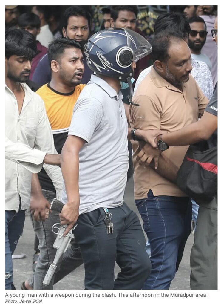 16 జూలై 2024న ఈ నిరసనకారులకు పోలీస్,ఛాత్ర లీగ్, జుబో లీగ్, స్వేచ్ఛ సెబక్ లీగ్ నాయకులకి మధ్య ఘర్షణ జరిగింది. ఈ సందర్భంలో బంగ్లాదేశ్లోని చిట్టగాంగ్లోని ఉన్న మురాదపూర్ ఏరియాలో వైరల్ వీడియోలో కనిపిస్తున్న వ్యక్తి ఒక పిస్టల్ పట్టుకుని తిరుగుతూ, నిరసనకారులపై ఫైరింగ్ జరిపాడని వార్తా కథనాలు పేర్కొన్నాయి (ఇక్కడ, ఇక్కడ, ఇక్కడ). ఈ వ్యక్తి పేరు ఫిరోజ్ ఆలం అని ‘Protidiner Bangladesh’ తమ కథనంలో పేర్కొంది.