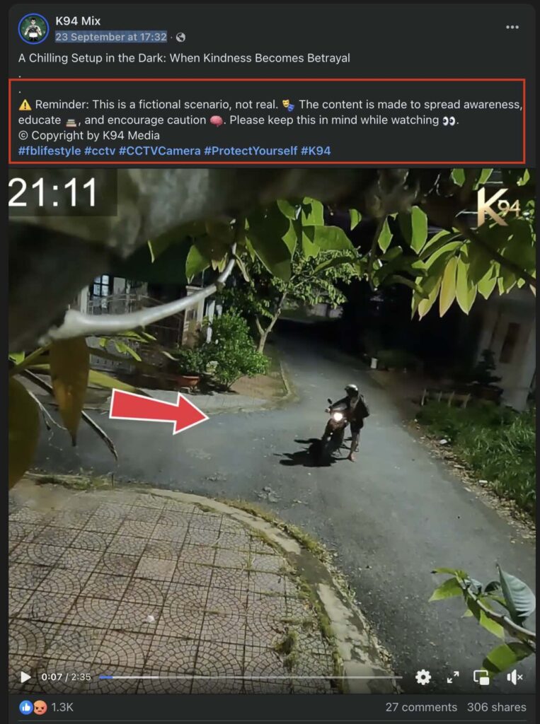 K94 Studio Space వారి పేజీ బయోలో ‘Digital Creator’ అని రాసి ఉంది. ఈ పేజీలో ఇటువంటి చాలా స్క్రిప్టెడ్, ఫిక్షనల్ వీడియోలు ఉన్నాయి (ఇక్కడ, ఇక్కడ, ఇక్కడ).