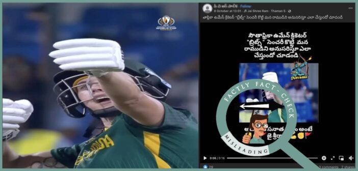 చివరగా, 2025 మహిళల క్రికెట్ ప్రపంచ కప్ సందర్భంగా దక్షిణాఫ్రికా క్రికెటర్ తజ్మిన్ బ్రిట్స్ చేసిన మహ్మద్ మహమ్మద్ సలా సెలబ్రేషన్ వీడియోను, ఆమె శ్రీరాముణ్ణి అనుకరిస్తూ ఇలా చేశారని తప్పుగా షేర్ చేస్తున్నారు.