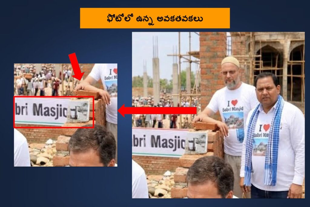 తృణమూల్ కాంగ్రెస్ నుంచి సస్పెండ్ అయిన ఎమెల్యే హుమాయున్ కబీర్, పశ్చిమ బెంగాల్లోని ముర్షిదాబాద్ జిల్లాలో ఉన్న రేజీనగర్లో 6 డిసెంబర్ 2025న ‘బాబ్రీ మసీదు తరహా’ మసీదు యొక్క శంకుస్థాపన చేశాడు (ఇక్కడ, ఇక్కడ, ఇక్కడ). దీనిపై దేశవ్యాప్తంగా చర్చ నెలకొన్న నేపథ్యంలో, AIMIM నాయకుడు అసదుద్దీన్ ఒవైసీతో కలిసి రాహుల్ గాంధీ ఈ మసీదు నిర్మాణంలో పాల్గొంటున్న దృశ్యం అని చెప్తూ సోషల్ మీడియాలో ఒక ఫోటో షేర్ చేయబడుతోంది. అసలు, ఈ క్లెయిమ్ వెనుక ఎంత నిజం ఉందో ఈ ఆర్టికల్ ద్వారా చూద్దాం.