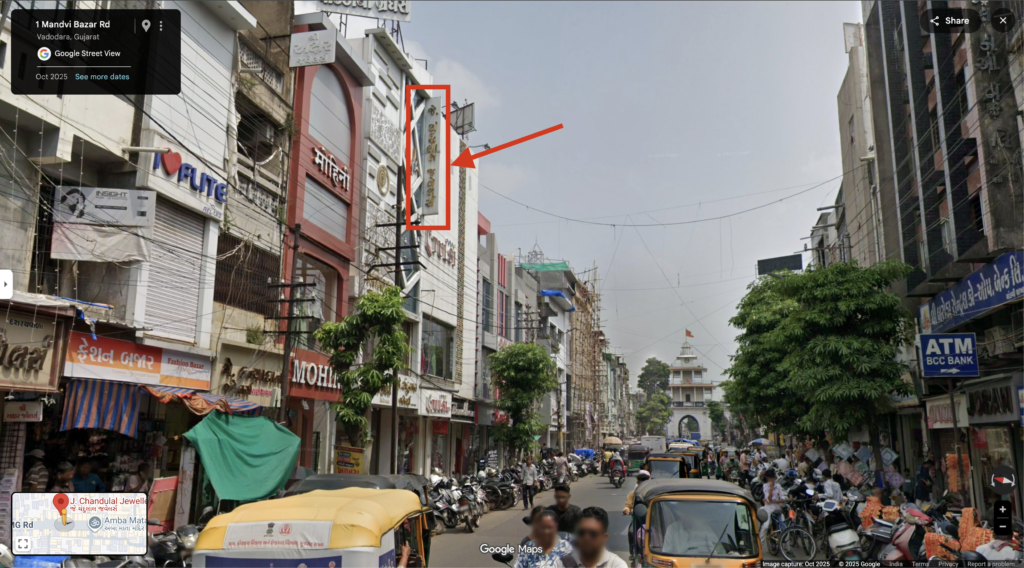 ఈ క్లూ ఉపయోగించి ఈ బిల్దింగ్ను మేము గూగుల్ మ్యాప్స్లో కనుగొన్నాము. ఇది గుజరాత్లోని వడోదరలో ఉన్న ‘1 మాండ్వి బజార్ రోడ్డు’లో ఉంది.