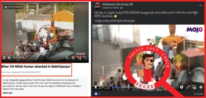 ఈ వీడియోను వారు 27 మార్చి 2022లో అప్లోడ్ చేశారు. దీని టైటిల్, వివరణ ప్రకారం బీహార్ ముఖ్యమంత్రి నితీష్ కుమార్ మార్చి 2022లో భక్తియార్పుర్, బీహర్లోని ఒక వేడుకకి వెళ్లినప్పుడు ఒక వ్యక్తి కొట్టాడు.