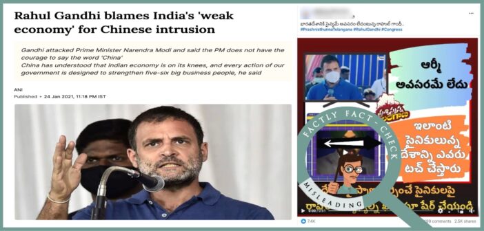 దీన్ని బట్టి, భారతదేశ రక్షణ దళాలను కార్మికులు, శ్రామికులు, రైతులతో భర్తీ చేయాలని గాంధీ చెప్పలేదని స్పష్టమవుతుంది. భారత సరిహద్దుల్లో చైనా అతిక్రమణలు భారతదేశ ఆర్థిక బలహీనత కారణంగానే జరుగుతున్నాయని రాహుల్ గాంధీ సూచించారు. కార్మిక వర్గాన్ని శక్తివంతం చేయడం ద్వారా, భారత ఆర్థిక వ్యవస్థను బలోపేతం చేయడం ద్వారా చైనా భారత్ను సవాలు చేసే అవకాశం తక్కువగా ఉంటుందని ఆయన సూచించారు. దీనికి సంబంధించిన వార్తా కథనాలు ఇక్కడ & ఇక్కడ చూడవచ్చు.