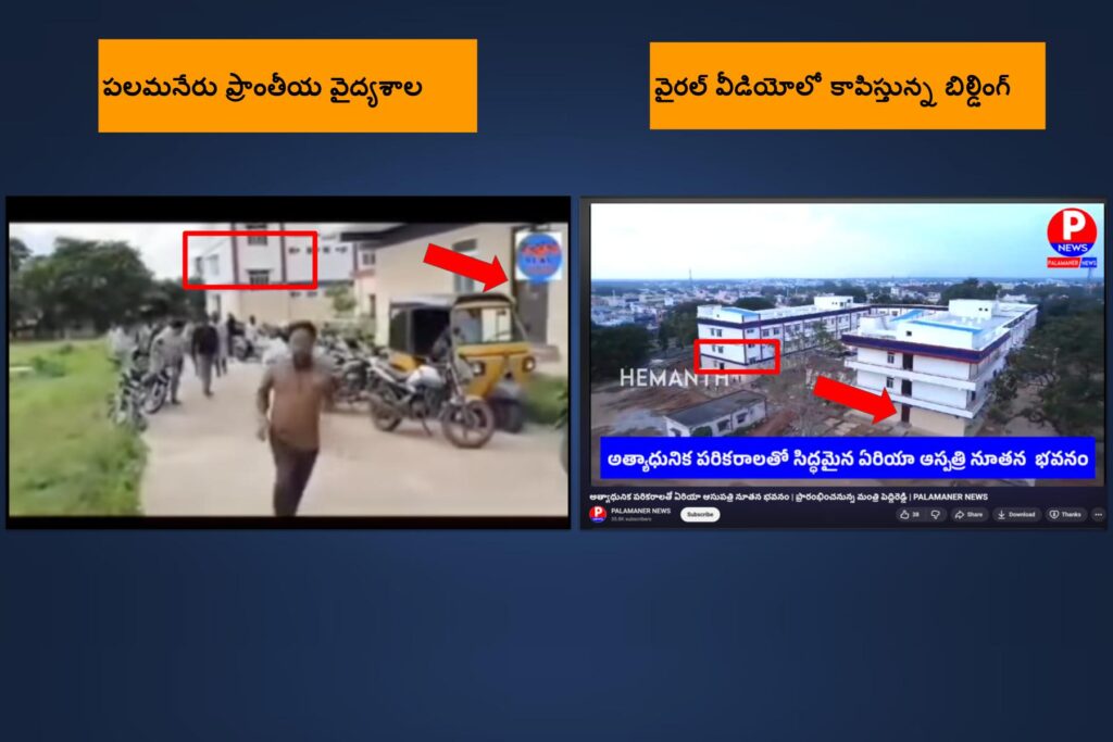 ఈ ఆసుపత్రి గురించి ‘Palamaner News’ అనే యూట్యూబ్ ఛానల్ వారు అప్లోడ్ చేసిన ఒక వీడియోలో కనిపిస్తున్న భవనం, వైరల్ వీడియోలో కనిపిస్తున్న భవనం మాకు ఒకే లాగా అనిపించాయి (కట్టడం ఉన్న విధానం మరియు పెయింటింగు వల్ల).