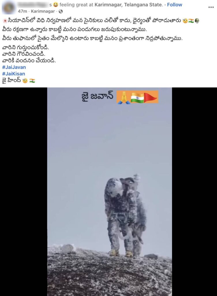 చివరిగా, సియాచిన్లో విధులు నిర్వహిస్తున్న భారత సైనికుల దృశ్యాలంటూ సంబంధం లేని వీడియోను షేర్ చేస్తున్నారు.