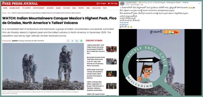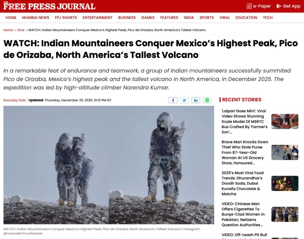ఈ సంఘటనకు సంబంధించిన మరింత సమాచారం కోసం తగిన కీవర్డ్స్ ఉపయోగించి వెతకగా, ఇవే దృశ్యాలను రిపోర్ట్ చేస్తూ డిసెంబర్ 2025లో ప్రచురించబడిన పలు వార్త కథనాలు (ఇక్కడ, ఇక్కడ & ఇక్కడ) మాకు లభించాయి. ఈ కథనాలు ప్రకారం, హర్యానాలోని హిసార్కు చెందిన పర్వతారోహకుడు నరేంద్ర కుమార్ నేతృత్వంలోని పర్వతారోహకులు టీమ్ మెక్సికోలోని పికో డి ఒరిజాబాను విజయవంతంగా అధిరోహించింది. 5,636 మీటర్ల (18,491 అడుగులు) ఎత్తులో ఉన్న ఈ శిఖరం మెక్సికోలోనే అత్యంత ఎత్తైనదిగా, ఉత్తర అమెరికాలోనే అతిపెద్ద అగ్నిపర్వతం. కఠినమైన శీతాకాల పరిస్థితుల్లో జమాపా గ్లేసియర్ మార్గం ద్వారా ఈ ఆరోహణను పూర్తి చేయడం భారతీయ పర్వతారోహణలో ఒక ముఖ్యమైన విజయం అని కథనాలు పేర్కొన్నాయి. దీన్ని బట్టి, సియాచిన్లో పోస్ట్ చేయబడిన భారతీయ సైనికులకు ఎటువంటి సంబంధం లేదని మాకు స్పష్టమైంది.