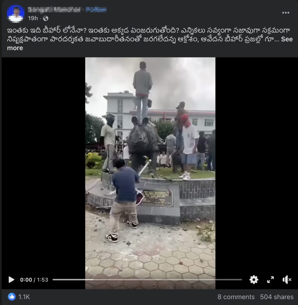 చివరగా, నేపాల్ యొక్క Gen-Z నిరసనలకు చెందిన ఒక సంబంధం లేని వీడియోను, 2025 బీహార్ ఎన్నికల ఫలితాల తర్వాత అక్కడ జరిగిన ఒక నిరసనను చూపిస్తున్న వీడియో అని తప్పుగా షేర్ చేస్తున్నారు.