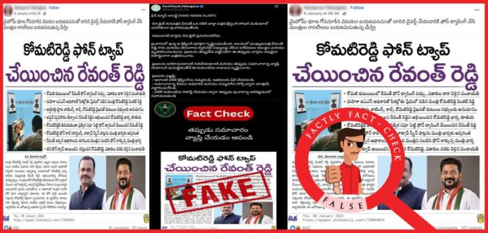 క్లెయిమ్: ముఖ్యమంత్రి రేవంత్ రెడ్డి, తమ ప్రభుత్వంలోని మంత్రి కోమటిరెడ్డి వెంకట్ రెడ్డి ఫోన్ను ట్యాప్ చేయించారు – దిశ డైలీ వార్త కథనం.