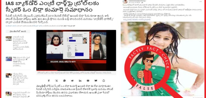 ప్రస్తుత లోక్సభ స్పీకర్ ఓం బిర్లా కుమార్తె అంజలి బిర్లా వృత్తిరీత్యా మోడల్ అని, ఆమె యూపీఎస్సీ నిర్వహించే సివిల్ సర్వీసెస్ పరీక్షకి సంబంధించి ఎలాంటి పరీక్ష రాయకుండానే సివిల్ సర్వీసెస్కు ఎంపికైంది అని చెప్తూ ఉన్న పోస్ట్ ఒకటి సోషల్ మీడియాలో వైరల్ అవుతుంది (ఇక్కడ, & ఇక్కడ). ఈ కథనం ద్వారా అందులో ఎంత నిజముందో చూద్దాం.