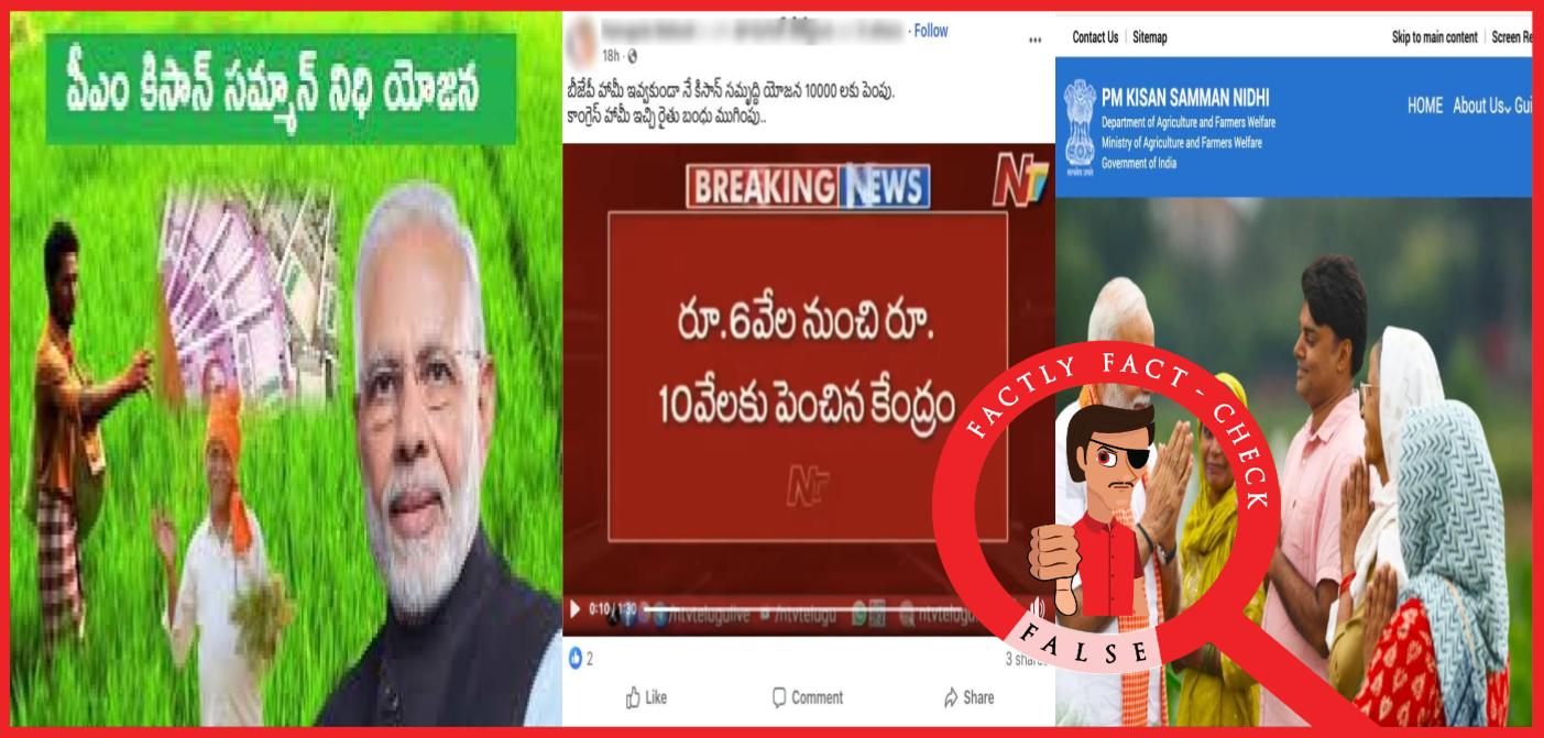 ప్రధాన మంత్రి-కిసాన్ సమ్మాన్ నిధి స్కీమ్ కింద ఆర్థిక సహాయాన్ని ప్రభుత్వం ₹6,000 నుండి ₹10,000కి పెంచలేదు