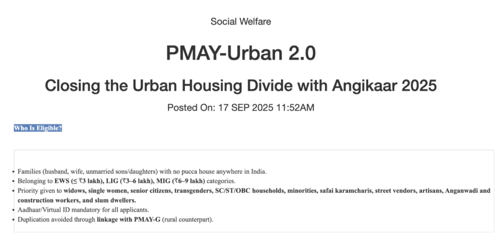 PMAY (Urban/Gramin) హౌసింగ్ స్కీం కింద వృద్ధులకు రిజర్వేషన్, ఇల్లు లేని వృద్ధులకు ప్రత్యేక కేటగిరీ కల్పిస్తుంది అని పోస్టు పేర్కొంది.