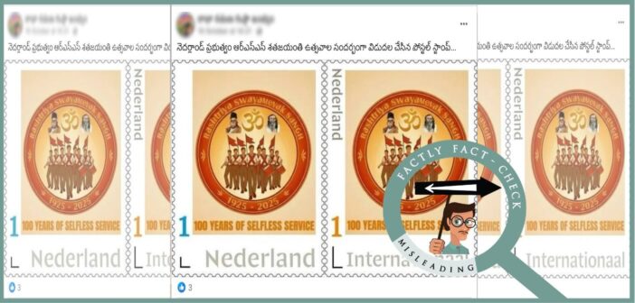 క్లెయిమ్: రాష్ట్రీయ స్వయం సేవక్ సంఘ్ (RSS) శతజయంతి ఉత్సవాల సందర్భంగా నెదర్లాండ్స్ ప్రభుత్వం విడుదల చేసిన RSS స్మారక పోస్టల్ స్టాంప్ (తపాలా బిళ్ల) యొక్క ఫోటో.