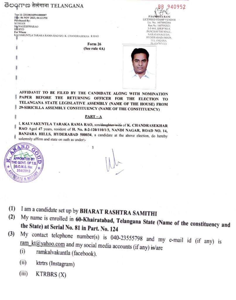 అంతేకాకుండా, ఈ వైరల్ జాబితాలో కనిపించే ఇంటి నంబర్ 8-2-120/110/4 నంది హిల్స్లోని BRS వర్కింగ్ ప్రెసిడెంట్ KTR ఇంటి నంబర్ అని వైరల్ పోస్ట్లు పేర్కొంటున్నాయి. 2023 అసెంబ్లీ ఎన్నికల్లో కేటీఆర్ దాఖలు చేసిన అఫిడవిట్ ప్రకారం, నందినగర్లోని ఆయన ఇంటి నంబర్ 8-2-120/110/1/3. ఇక్కడ గమనించాల్సిన విషయం ఏమిటంటే, ఈ ఇంటి నంబర్ హైదరాబాద్లోని ఖైరతాబాద్ నియోజకవర్గం పరిధిలోకి వస్తుంది.