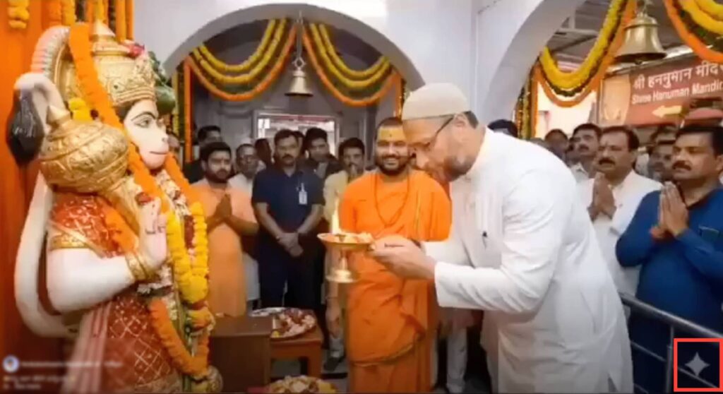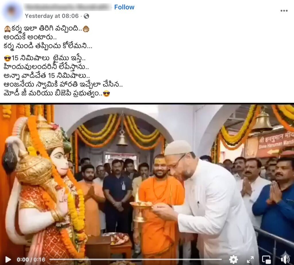 క్లెయిమ్: AIMIM అధినేత అసదుద్దీన్ ఒవైసీ హనుమాన్ ఆలయంలో హారతి నిర్వహిస్తున్న దృశ్యాలు.