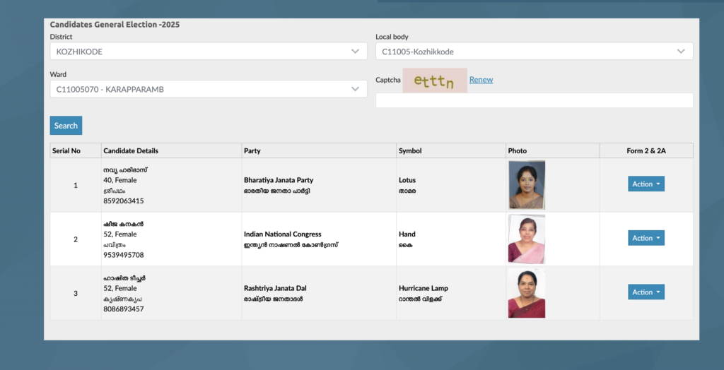 కోజికోడ్ వార్డ్ నంబర్ 70, కరప్పరంబ్ నుండి పోటీ చేసిన నవ్య హరిదాస్తో పాటు ఇతర అభ్యర్థుల వివరాల కోసం మేము పరిశోధించినప్పుడు, ఆమెతో పాటు కాంగ్రెస్ అభ్యర్ధిగా శ్రీజ కనకన్, రాష్ట్రీయ జనతా దళ్ అభ్యర్ధిగా హషితా టీచర్ పోటీ చేశారు అని స్పష్టం అయింది. నవ్య హరిదాస్ సోషల్ మీడియాలో తన ప్రత్యర్థులతో పాటు ఉన్న ఫోటోను ఎన్నికల ఫలితాల తర్వాత పోస్టు చేసారు.