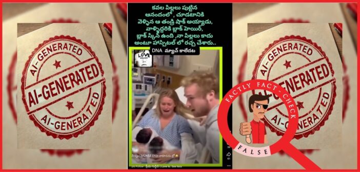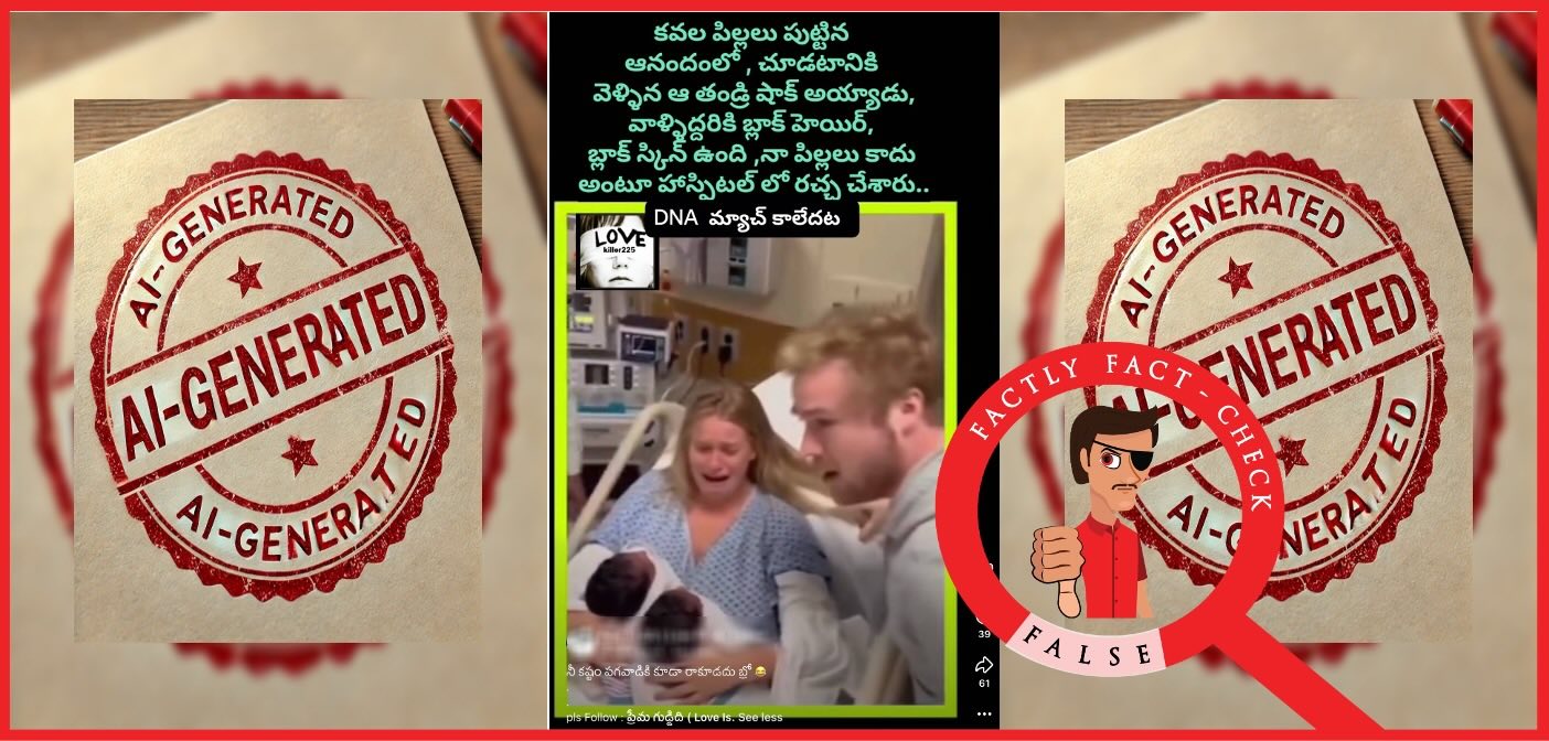 చివరిగా, ఒక తెల్ల జంటకు నల్లరంగు కవలలు జన్మించగా భర్త భార్యను అనుమానించాడు అంటూ AI ద్వారా తయారు చేసిన వీడియోను తప్పుగా షేర్ చేస్తున్నారు.