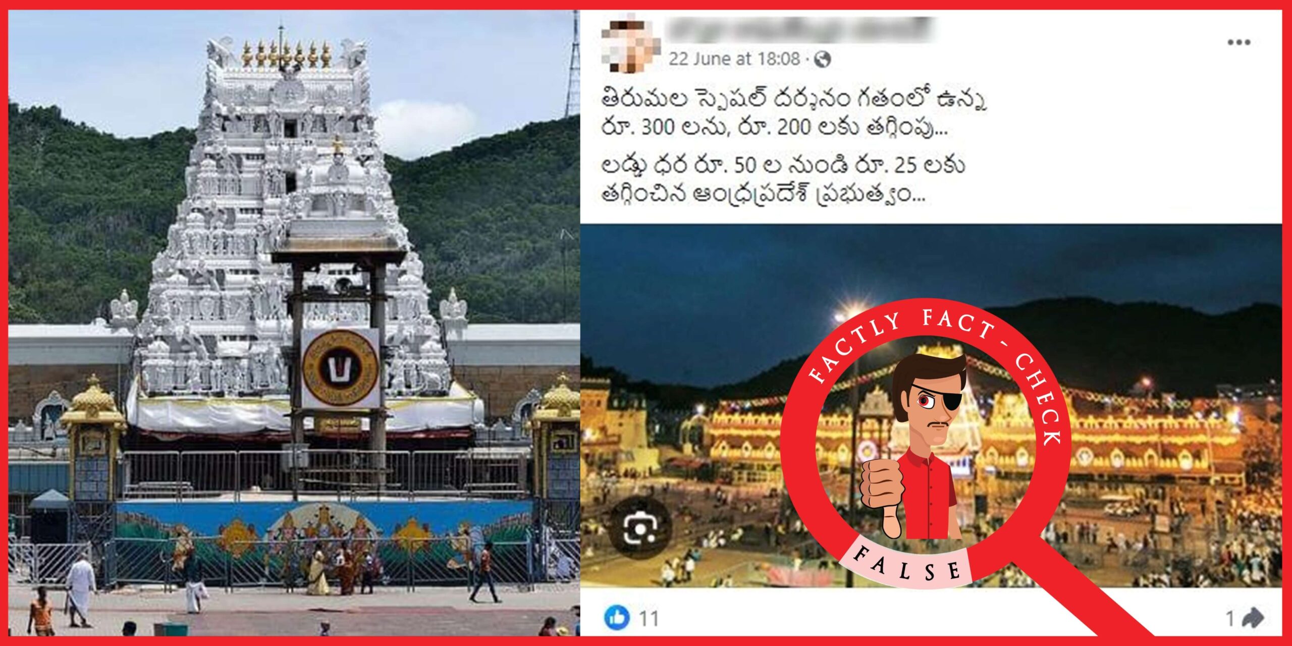 క్లెయిమ్: ఆంధ్రప్రదేశ్ ప్రభుత్వం తిరుమల స్పెషల్ దర్శనం, లడ్డూ ధరలను తగ్గించింది.