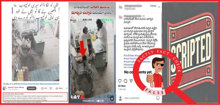 ఫాక్ట్(నిజం): ఈ వీడియోలో చూపిస్తున్నది వాస్తవంగా చోటుచేసుకున్న ఘటన కాదు. ఇది ఒక స్క్రిప్టెడ్ వీడియో. ఈ వీడియోను ‘Kamran Team Official’ అనే యూట్యూబ్ ఛానెల్ 16 నవంబర్ 2025న షేర్ చేసింది. ఈ వీడియో వివరణలో, ఇది ఒక స్క్రిప్టెడ్ వీడియో అని, ఈ వీడియోలో కనిపించే వ్యక్తులు నటులు అని స్పష్టంగా పేర్కొనబడింది. కావున పోస్టు ద్వారా చెప్పేది తప్పు.