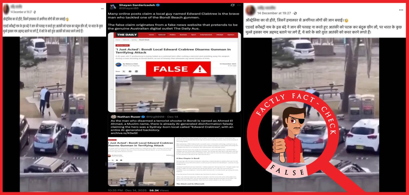 Fact: The civilian who bravely tackled and disarmed one of the shooters during the Bondi Beach terror attack in Sydney has been identified as Ahmed Al Ahmed, not Edward Crabtree. Multiple media reports have confirmed this. Additionally, Australian Prime Minister Anthony Albanese publicly acknowledged him as Ahmed in an X post dated 16 December 2025, calling him an “Australian hero.” Further, BBC journalist Shayan Sardarizadeh clarified that the viral identification of Crabtree originated from a misleading article published by a website named The Daily. Hence, the claim made in the post is FALSE.