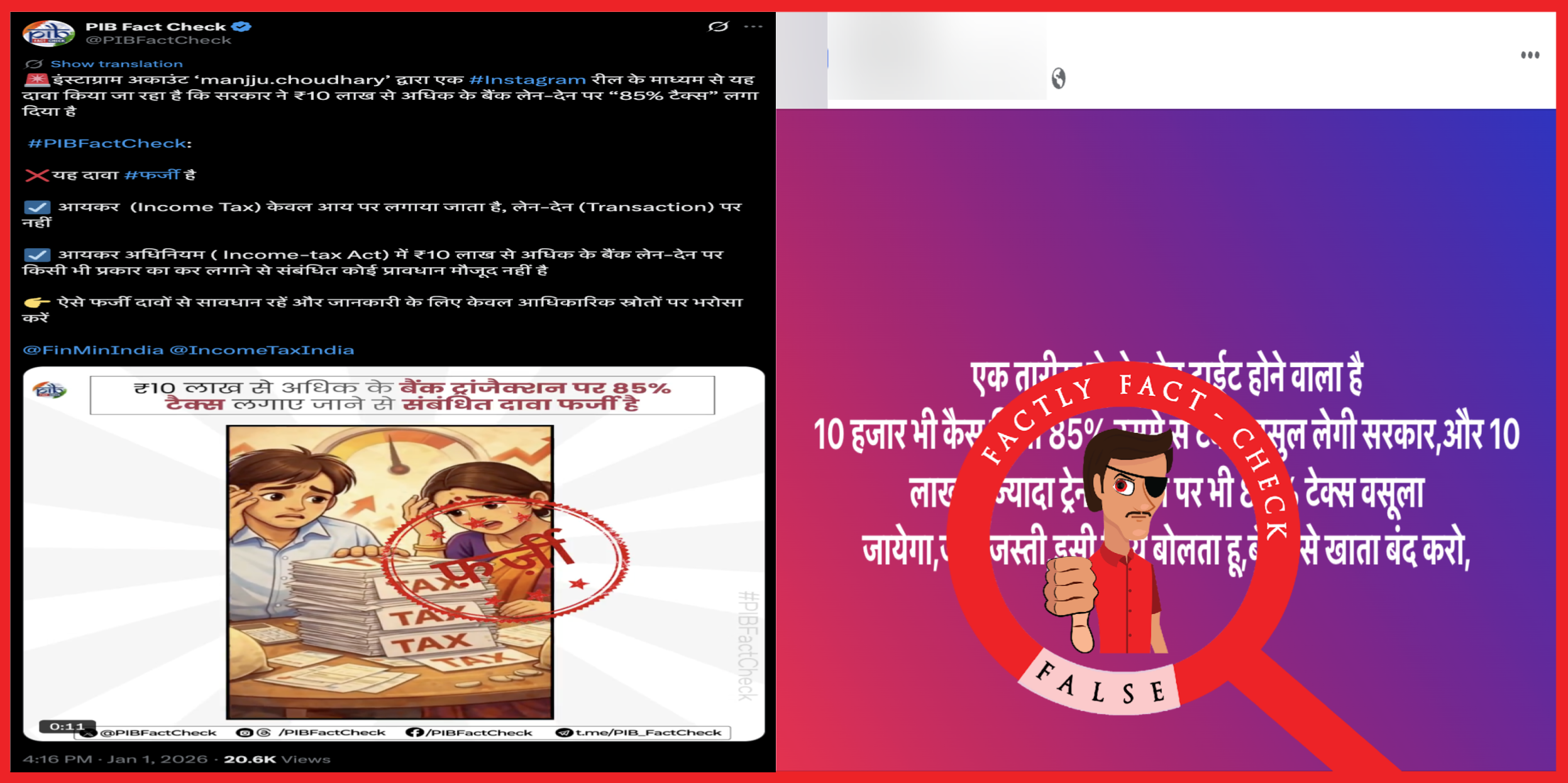 PIB Fact check also clarified this by stating that the viral claim is False and that “Income Tax is levied only on income, not on transactions. There is no provision in the Income-tax Act related to imposing any kind of tax on bank transactions exceeding ₹10 lakh.”