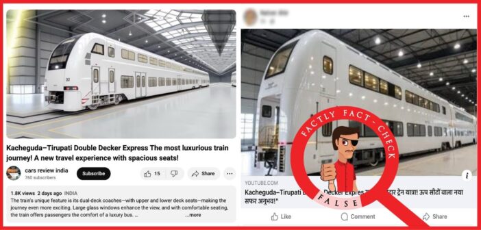 A video claiming to show the Kacheguda–Tirupati–Kacheguda AC Double Decker Express (Train No. 22120/22119) is going viral on social media (here, here, and here). The video further discusses the features and facilities available on the train. Through this article, let us fact-check the claim made in the post.