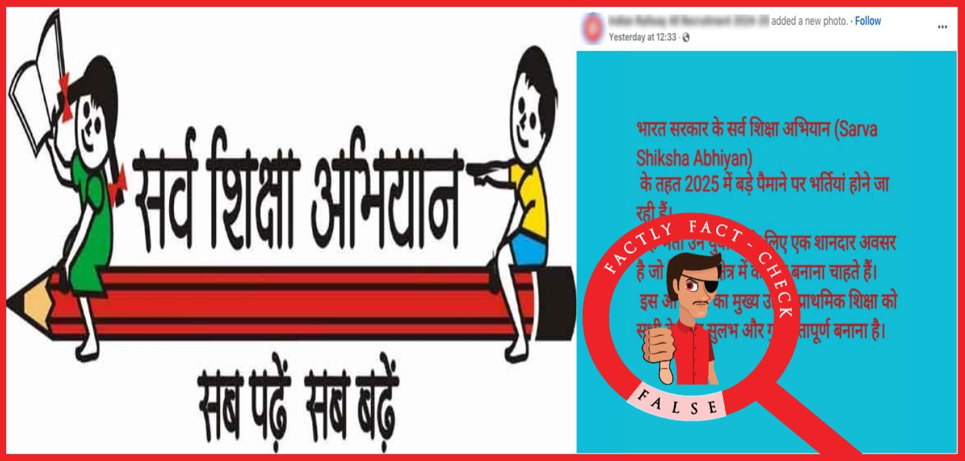 A social media post (here and here) claims that the Government of India has issued a recruitment notification under the Sarva Shiksha Abhiyan for 2025, announcing large-scale hiring in the education sector to ensure accessible and quality primary education for all. We also received a request on the Factly WhatsApp tipline (+91 92470 52470) to verify this recruitment notification, which includes a website link for applications (https://www.sarvashikshaabhiyan.com). Let’s verify the truth behind this through this article.