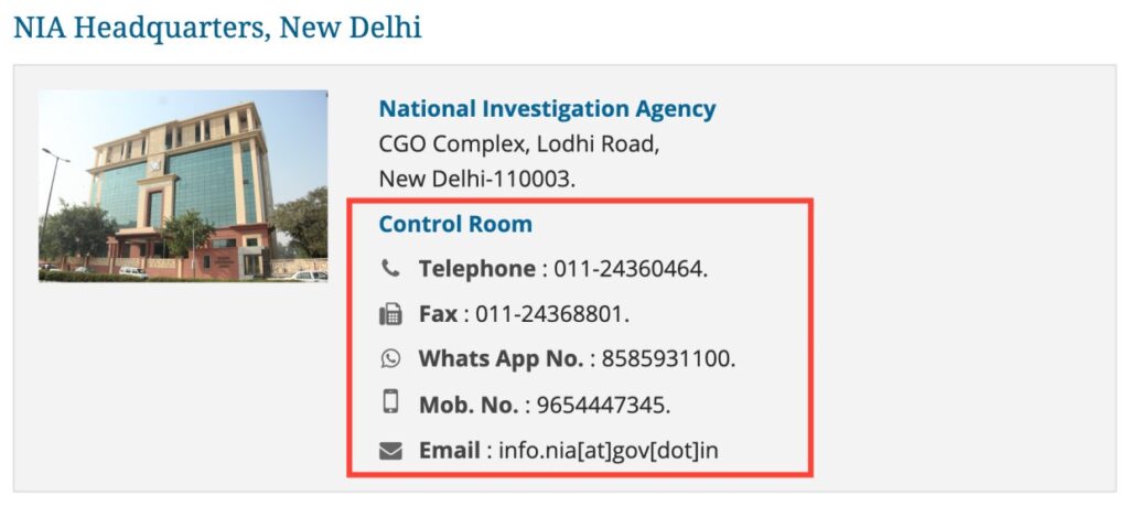 We then went through the NIA’s official website and found that the numbers mentioned in the viral post do appear in the “Contact Us” section as genuine control-room numbers of the agency’s Delhi headquarters. However, these numbers were not issued for the purpose claimed in the viral post.