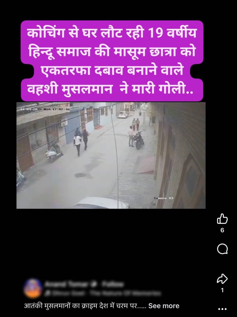 CCTV footage showing a man shooting a young woman in broad daylight is going viral on social media (here, here, here, here, here, and here), with claims that in Haryana’s Faridabad, a 19-year-old Hindu student returning home from coaching was shot by a Muslim man for rejecting his advances. Through this article, let us fact-check the claim made in the post.