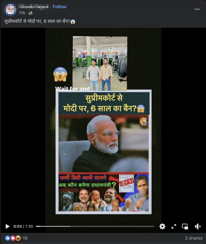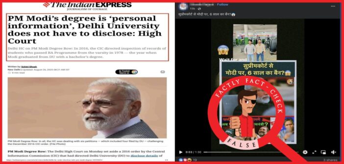 A video (here and here) on social media claims that the Supreme Court of India declared the degree of Prime Minister Narendra Modi to be fake. According to the voice-over narration in the video, SC apparently stated that the documents he shared with the public are fake and banned him from contesting elections for six years. We fact-check this claim through this article.