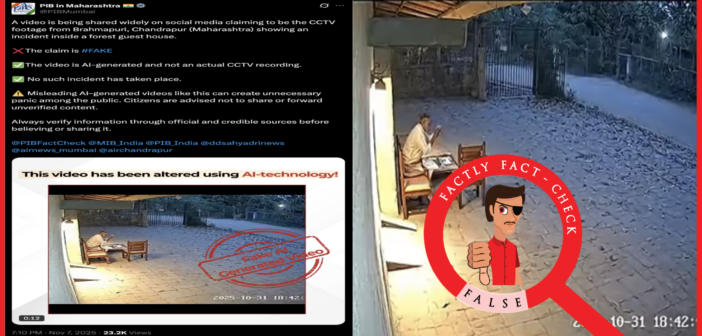 Fact: The video is AI-generated, not a real CCTV recording. The forest officials and PIB reported that no such incident took place and that it’s an AI-generated one. Hence, the claim made in the post is FALSE.