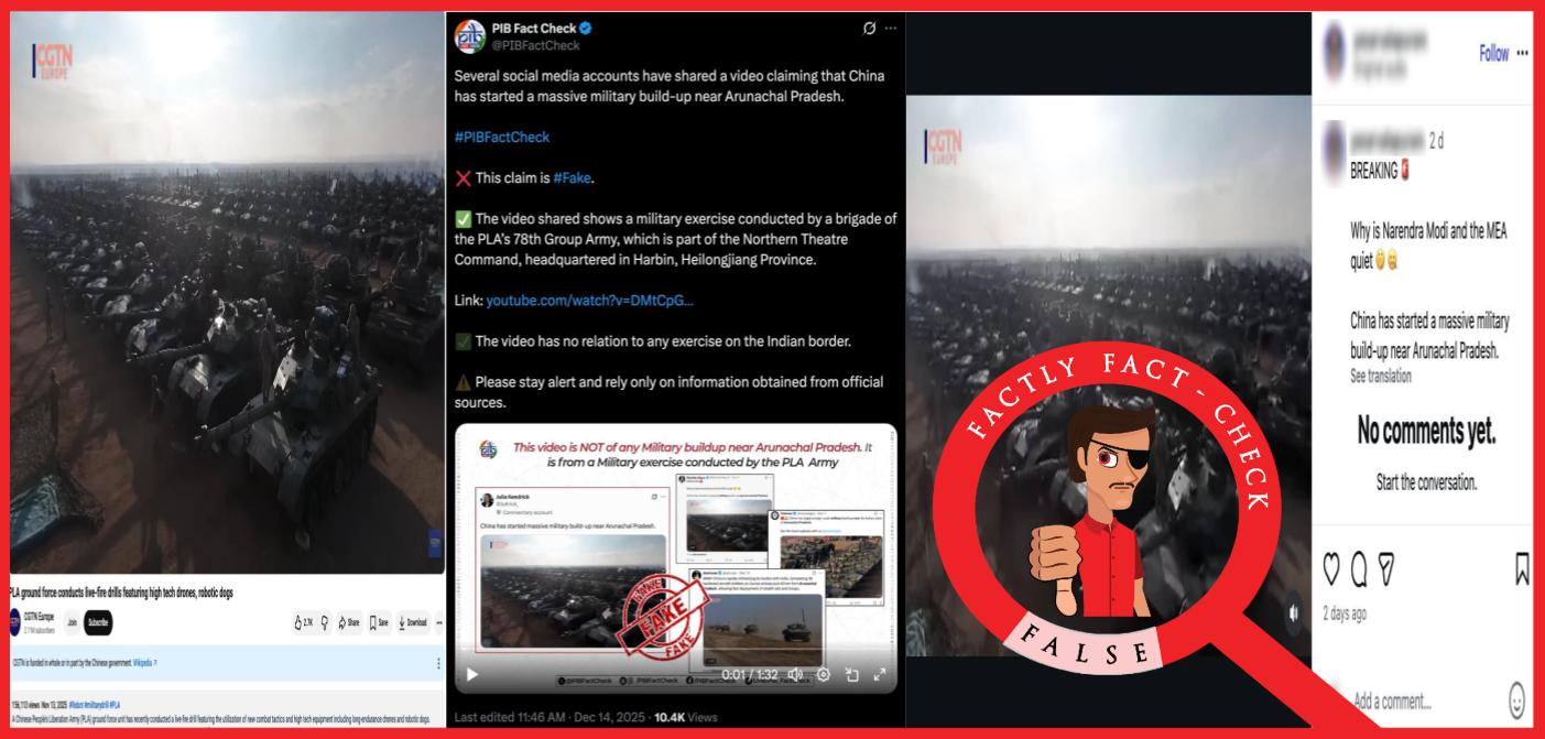 Additionally, an X post by PIB Fact Check, dated 14 December 2025, debunked the viral video, stating that several social media accounts had falsely claimed China had initiated a massive military build-up near Arunachal Pradesh. The video actually shows a military exercise by a brigade of the PLA’s 78th Group Army, part of the Northern Theatre Command in Harbin, Heilongjiang Province, and is not related to any exercise on the Indian border.
