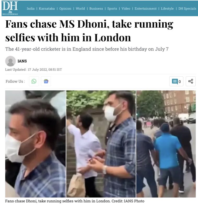 We also found that The Times of India had uploaded the same video on its YouTube channel on 17 July 2022, identifying it as a clip of former India captain MS Dhoni being chased by fans eager for selfies on the streets of London. The report explained that the 41-year-old cricketer was in England at the time, celebrating his birthday with his wife, friends, and a few Indian players. The viral footage simply shows Dhoni walking in London while Indian fans enthusiastically follow him.