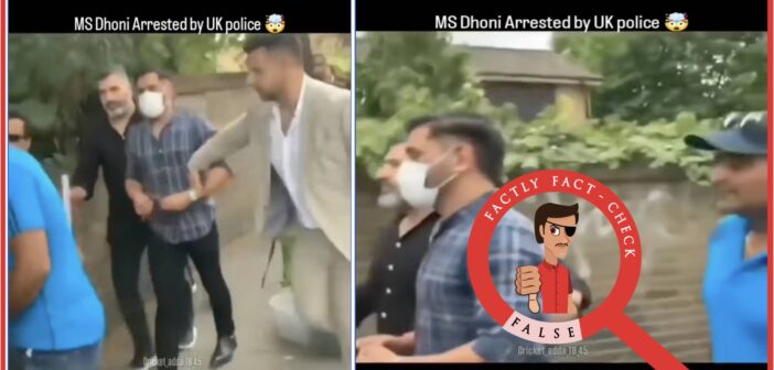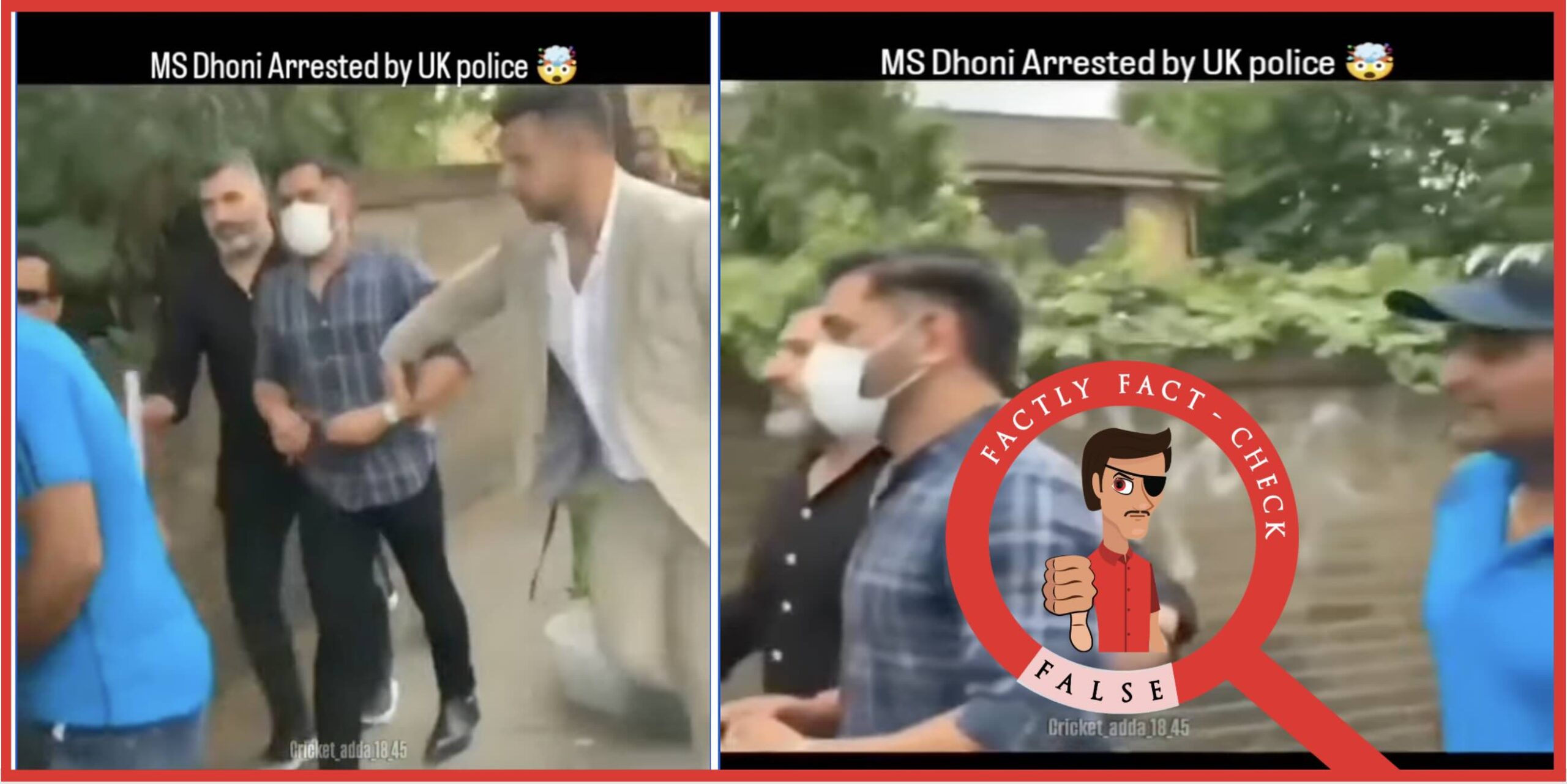 A video is going viral on social media showing a few people walking alongside Indian cricketer Mahendra Singh Dhoni, holding him by the arms as they escort him across a street. The clip is being shared with the claim that Dhoni has been arrested in the UK. Let’s verify the truth behind this claim.