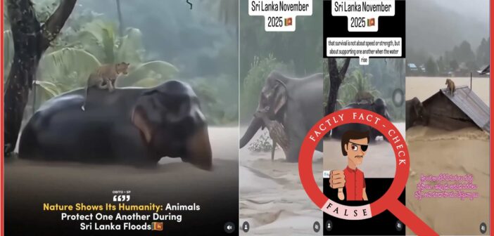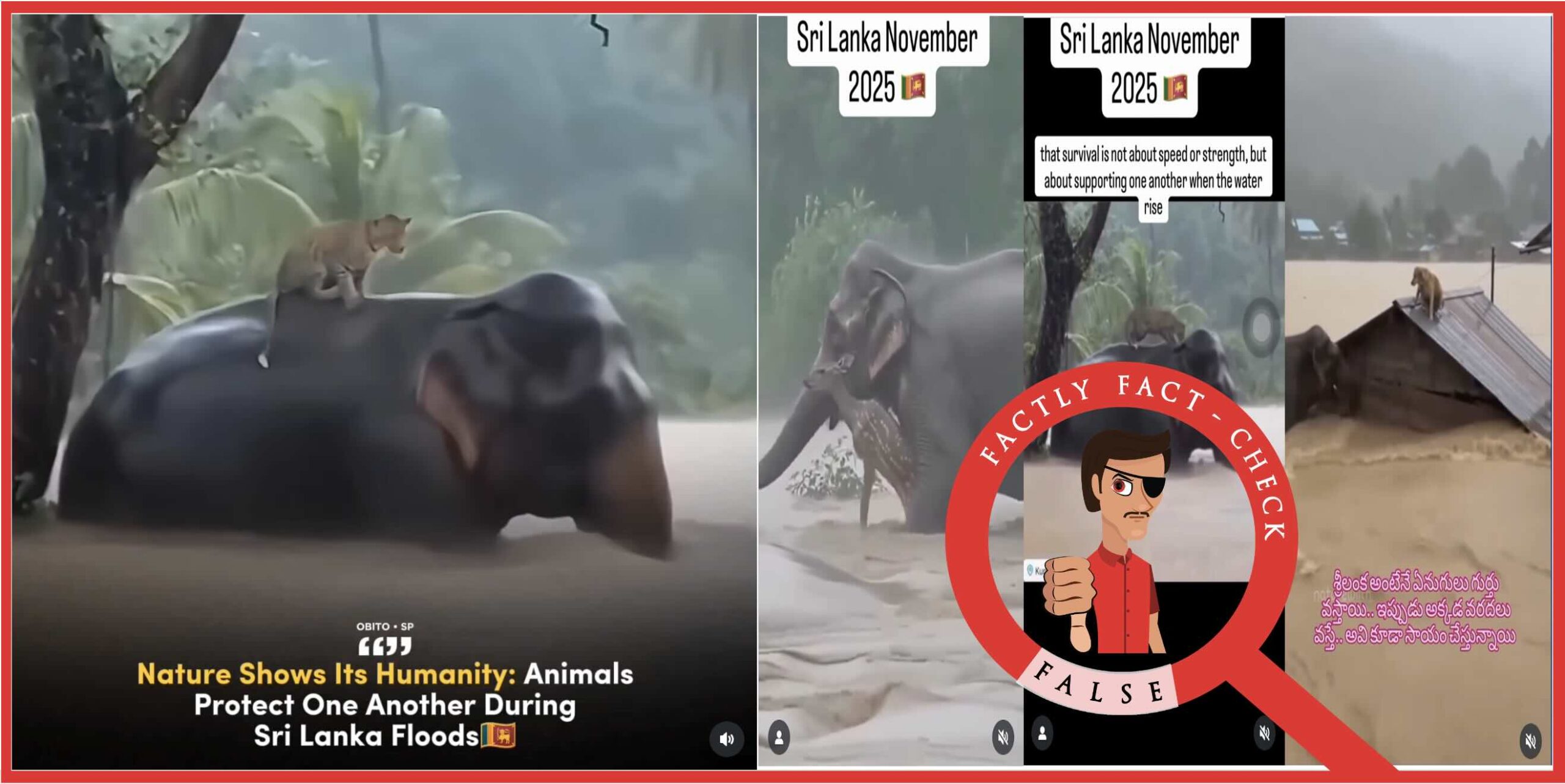 The Ditwa cyclone has hit Sri Lanka, with many regions witnessing severe flooding. According to reports, more than 200 people are missing, around 20,000 homes have been destroyed, and nearly 108,000 people have been moved to state-run temporary shelters, as per the Disaster Management Centre. Amid this situation, several videos (here, here and here) have gone viral on social media claiming to show an elephant rescuing multiple animals such as deer, a dog and a leopard from the floodwaters. Let’s find out the truth behind these videos.