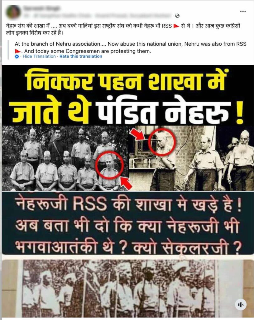 In this context, a collage of photos of former Prime Minister Pandit Jawaharlal Nehru has gone viral on social media platforms, claiming that Nehru attended RSS shakha meetings. In these photos, Nehru can be seen wearing shorts, a cap, and holding a stick—similar to the RSS uniform. Through this article, let’s fact-check the claim made in the post.