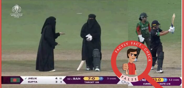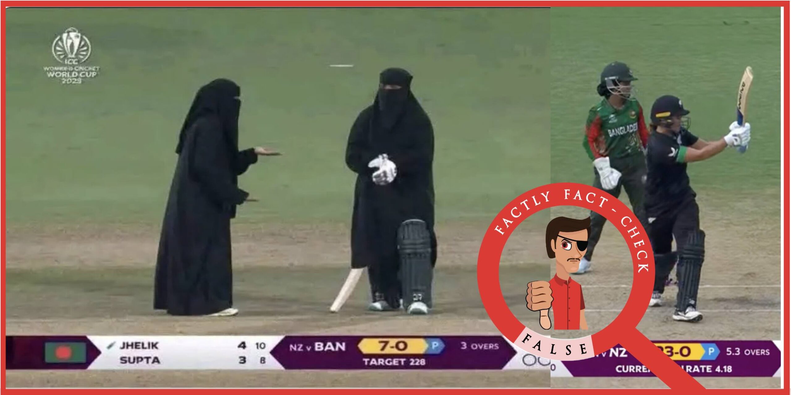 The ICC Women’s World Cup began on 30 September 2025 and will run until 2 November 2025, co-hosted by India and Sri Lanka. As the matches continue, a recent game between New Zealand and Bangladesh ended with New Zealand winning by 100 runs. Amid this, a photo (here, here and here) has gone viral on social media showing two women wearing burqas on a cricket field, with claims that Bangladeshi women players are competing in burqas. Let’s find the truth behind this photo.