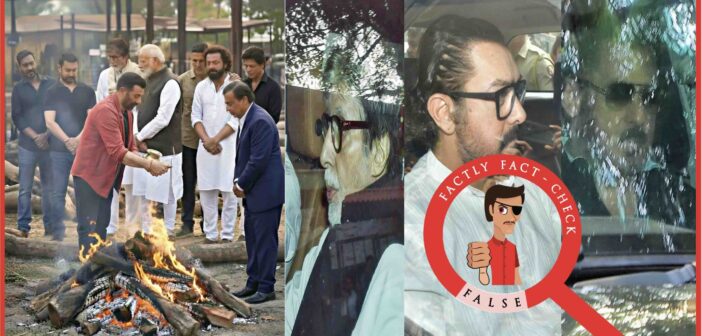 Further, the viral photo shows Dharmendra’s sons Sunny Deol and Bobby Deol standing alongside several major Bollywood actors, including Amitabh Bachchan, Shah Rukh Khan, Aamir Khan, Akshay Kumar, and Ajay Devgn. To verify whether all these celebrities attended the funeral, we reviewed multiple reports. NDTV and other media outlets confirmed that many of them, such as Amitabh Bachchan, Ajay Devgn and Aamir Khan, visited either Dharmendra’s home or the funeral in Mumbai (here, here and here). However, the exact lineup shown in the viral photo does not appear in any real photograph published by the media, indicating that the viral image is digitally created.