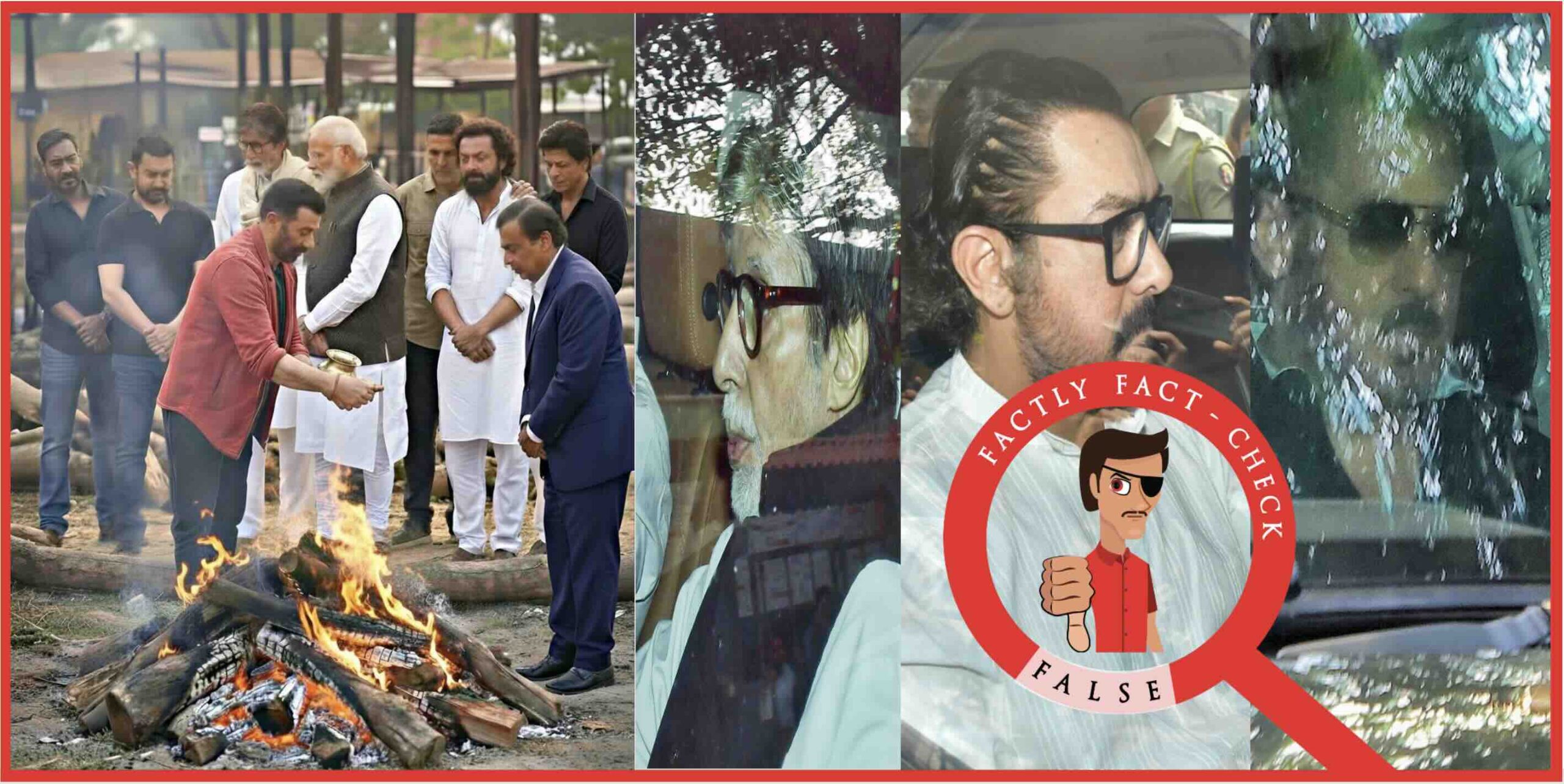 Claim: The viral photo shows PM Narendra Modi and Mukesh Ambani, along with Bollywood actors, attending the funeral of veteran actor Dharmendra.