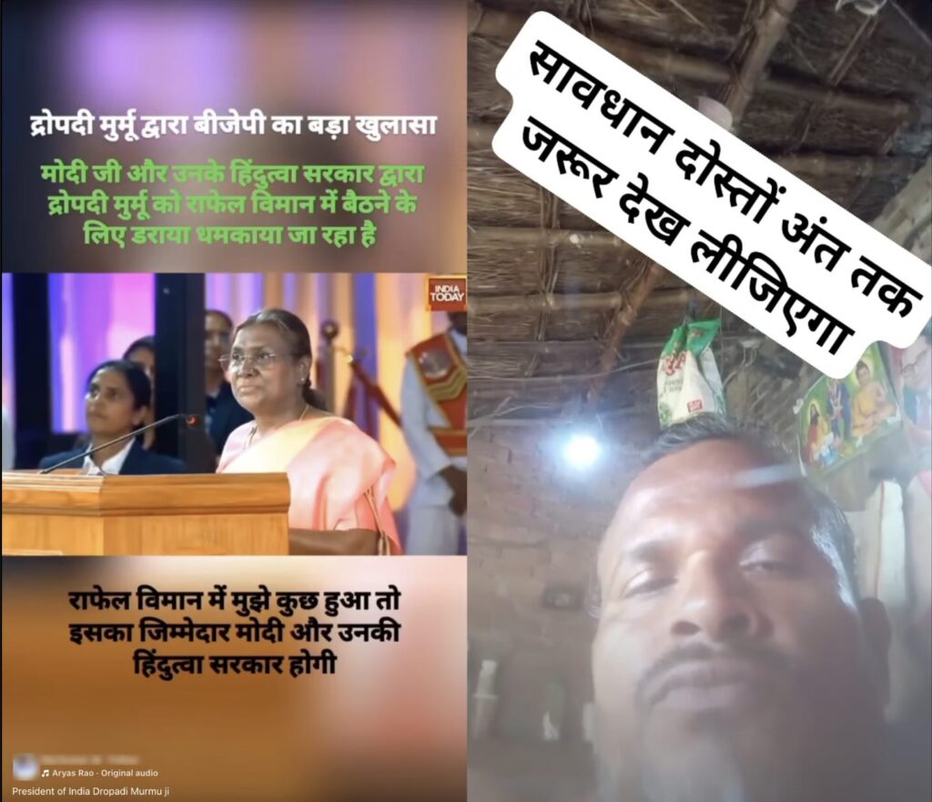 President Droupadi Murmu took a 25-minute sortie in a Rafale fighter jet from Ambala Air Force Station in Haryana on 29 October 2025, becoming the first Indian President to fly in two fighter aircraft. Piloted by Group Captain Amit Gehani, the jet flew at around 15,000 feet and covered nearly 200 km. Murmu had earlier flown in a Sukhoi-30 MKI in 2023 (here and here). Amid this, a video has gone viral on social media claiming that President Murmu said she was blackmailed by PM Modi and the government to sit in the Rafale despite her unwillingness. Let’s find the truth behind this video.