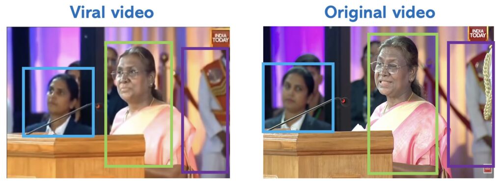 The India Today logo, the President’s attire, and the background in the original video perfectly match the viral clip, confirming its source. A side-by-side comparison of the viral video and the original footage clearly shows that both are from the same event. However, the event took place in February 2025, while President Murmu’s Rafale sortie occurred in October 2025, months apart, making it unlikely that her remarks were related to the flight. Moreover, upon reviewing the full video from the original event, we found no such statement made by the President, confirming that the viral clip has been digitally manipulated.