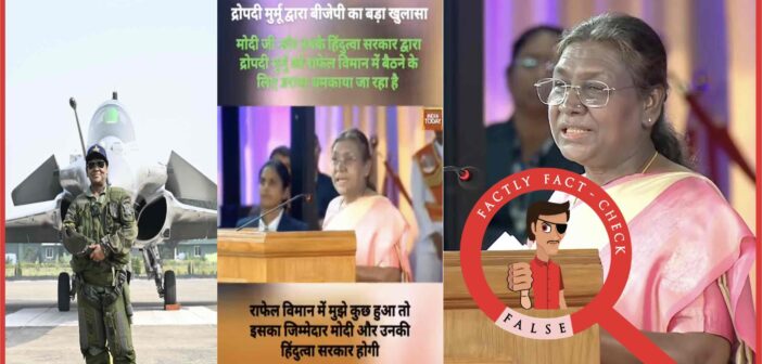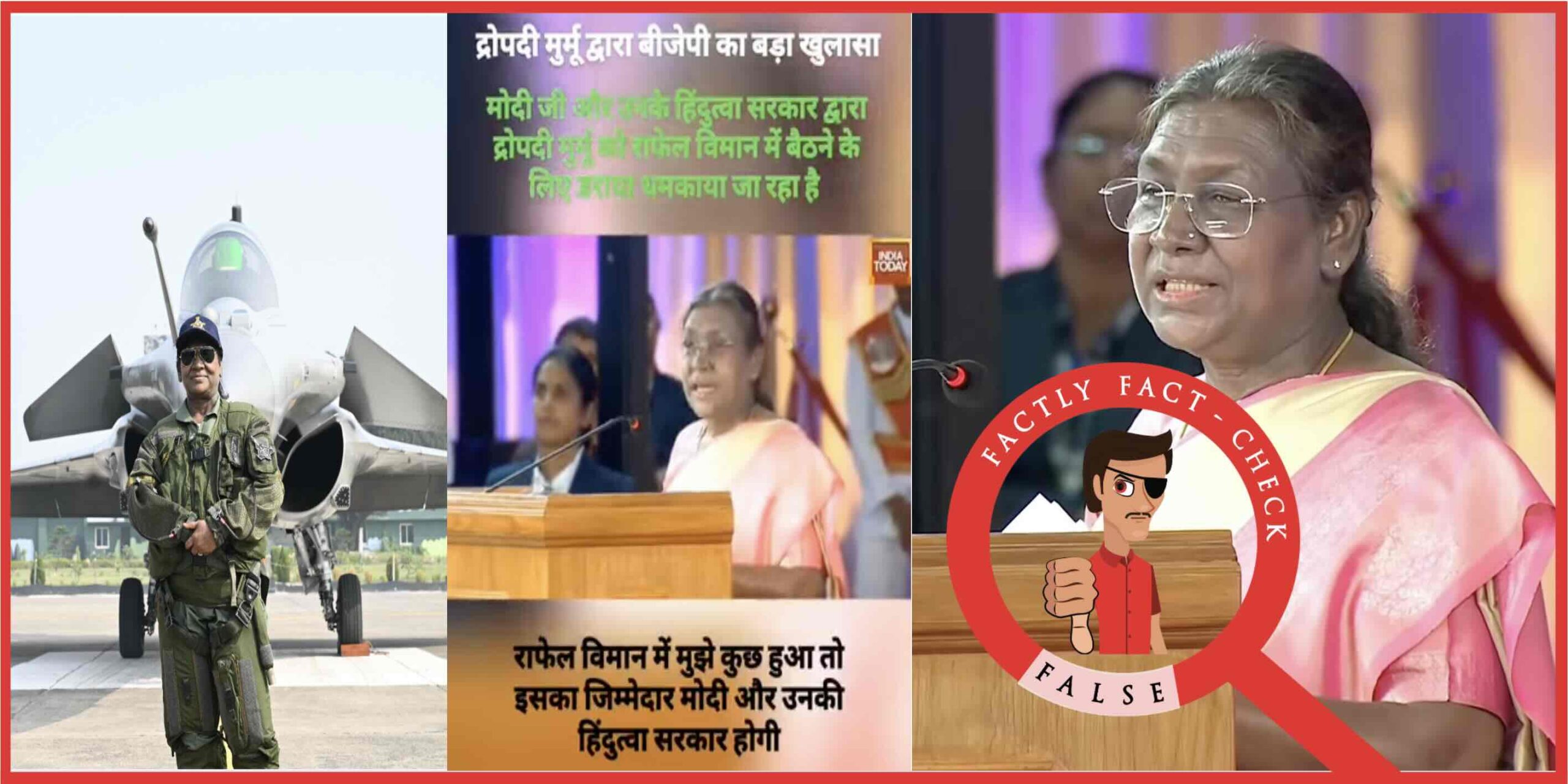 President Droupadi Murmu took a 25-minute sortie in a Rafale fighter jet from Ambala Air Force Station in Haryana on 29 October 2025, becoming the first Indian President to fly in two fighter aircraft. Piloted by Group Captain Amit Gehani, the jet flew at around 15,000 feet and covered nearly 200 km. Murmu had earlier flown in a Sukhoi-30 MKI in 2023 (here and here). Amid this, a video has gone viral on social media claiming that President Murmu said she was blackmailed by PM Modi and the government to sit in the Rafale despite her unwillingness. Let’s find the truth behind this video.