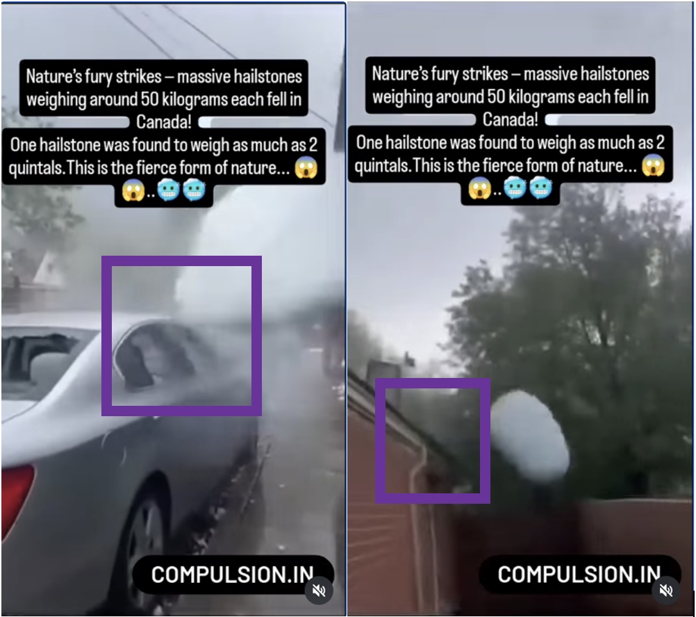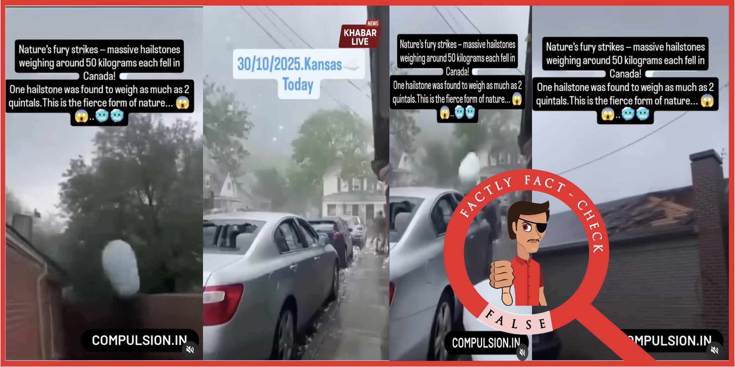 Claim: The viral video shows massive hailstones, weighing up to two quintals, falling on houses and cars in Canada/Kansas, U.S., in October 2025.