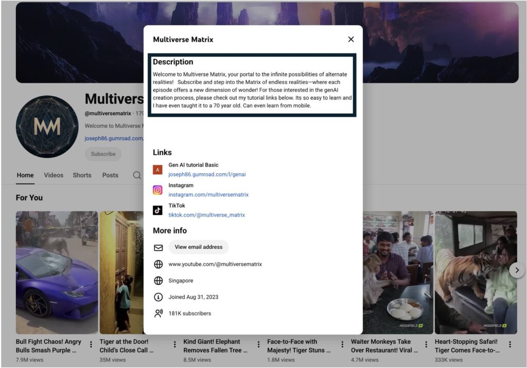 To trace the origin of the video, we performed a reverse image search on Google, which led us to its original upload on a YouTube channel named Multiverse Matrix. The channel’s description clearly states that it is a channel that uploads AI content, and several other videos on the channel also appear to be AI-generated (here, here and here).