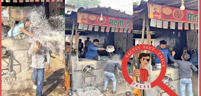 A video (here, here, here, here and here) of a tea vendor pouring boiling tea on a boy has gone viral on social media, with many users believing it to depict a real incident. Let’s find the truth behind this video.