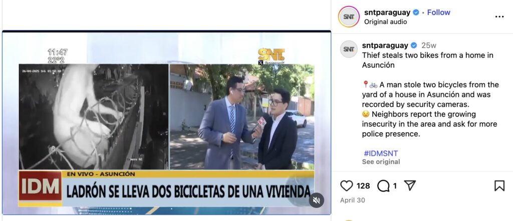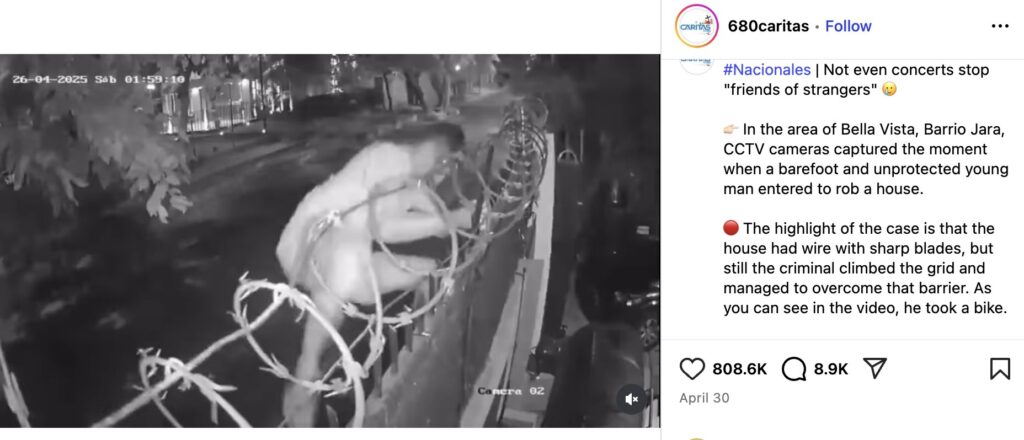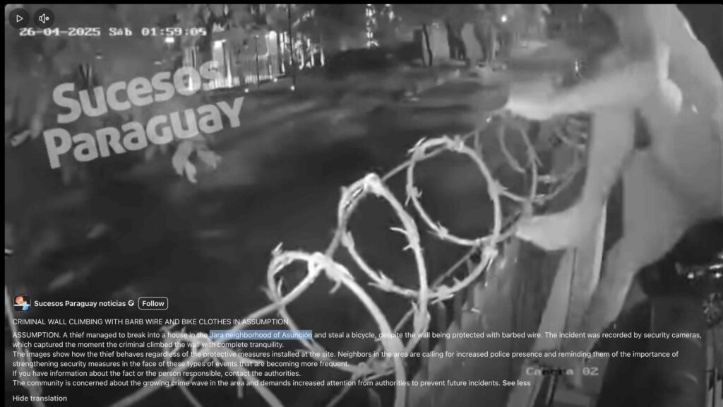 Further research led us to the same video posted on the Instagram handle of the Paraguayan news channel SNT Paraguay. They also confirmed that the footage is from Paraguay. According to their report, CCTV cameras in the Bella Vista area of Barrio Jara captured the moment when a barefoot man climbed over a wall lined with sharp wire to rob a house. Despite the barrier, he managed to get inside and steal a bicycle, as seen in the video.