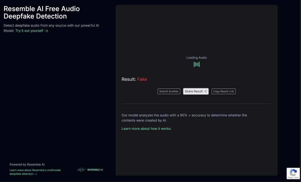 To further confirm whether the viral video was a deepfake, we analysed the audio using the AI-based detection tool Resemble AI. The tool flagged the audio as a deepfake. Combined with the mismatched lip-sync and the original Zee Jharkhand-Bihar footage, all available evidence confirms that the viral video is manipulated.