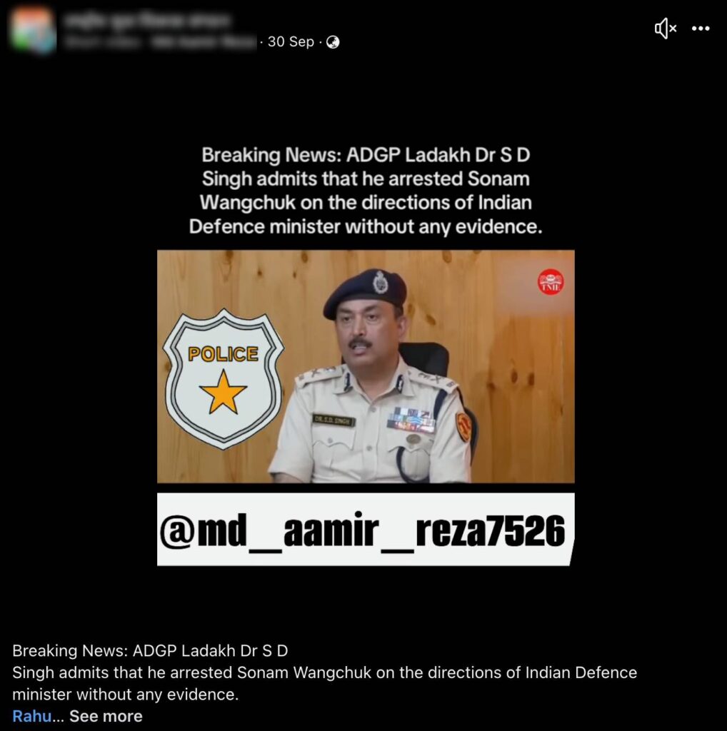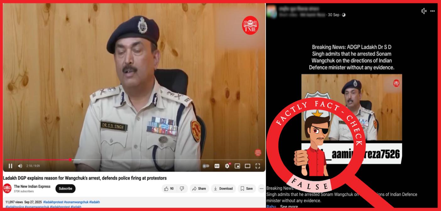 In this context, a video is circulating on social media (here, here) claiming to show Ladakh Director General of Police (DGP) Dr. S.D. Singh stated that no evidence was found against Sonam Wangchuk, yet he was arrested on the orders of the Indian Defence Minister, and he is apologising to the people of Kashmir. Let’s verify the claim made in the post in this article.